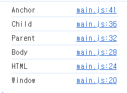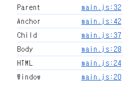 - 위에서는 window > documentElement > body > parent > child > anchor 의 관계를 가집니다.