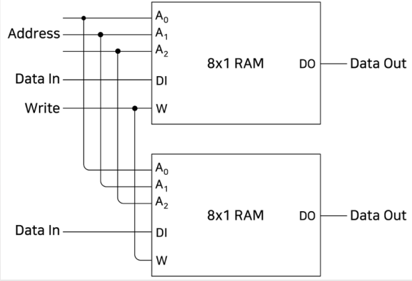 - 8×1 RAM을 여러개 묶어 만든 구조입니다.