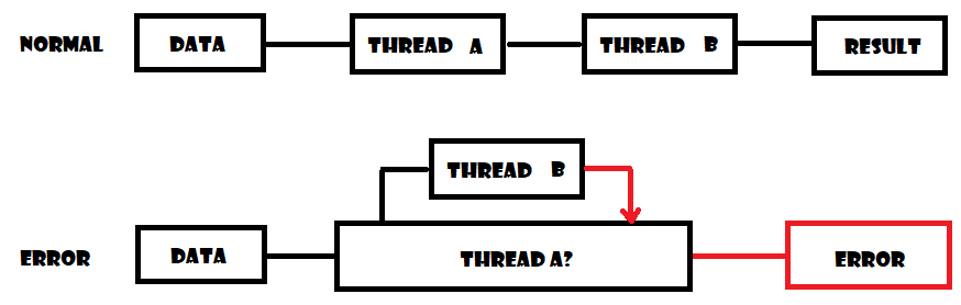 - 위와같이 Thread A를 진행중에 Thread B가 개입하여 문제가 생길 수 있습니다.