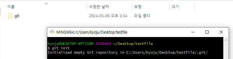 > git init 입력시 해당 폴더에 .git 파일이 생성됩니다.