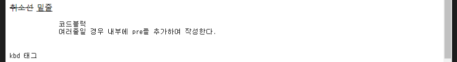 - kbd : 태그 내 텍스트를 고정폭 글꼴로 표시한다.