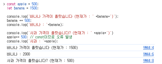 console.log('바나나 가격이 올랐습니다 (현재가 : ' +banana+')');